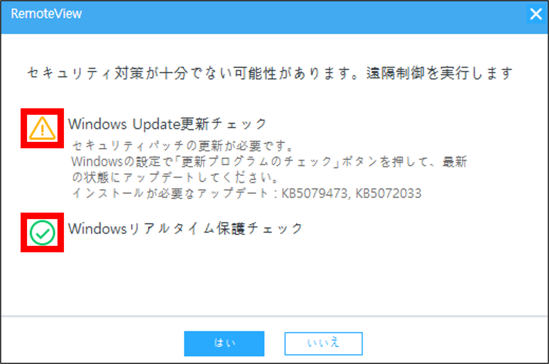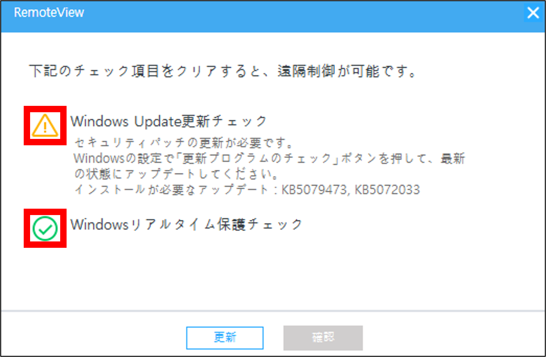 接続許可: 最新状態でない(警告が出た)場合でも、そのままリモート接続を開始できます。