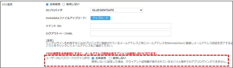 ・使用しない:ID/パスワードログインを制限し、SSOログインのみのログインに制限