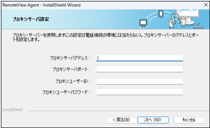 手動設定を選択した後、「次へ」>プロキシ情報を入力