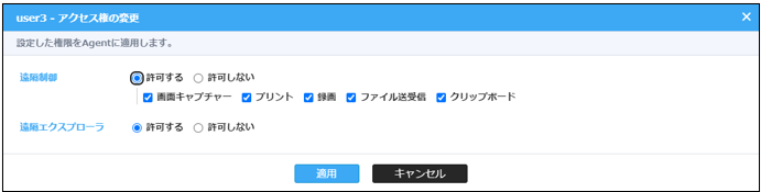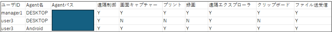 →ユーザーがどのAgentへの権限を保有しているか、またAgentに対する操作権限の詳細もご確認いただけます。