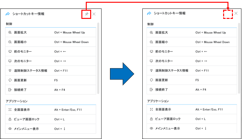 ・「ショートカットキー情報」の表示位置固定を削除
