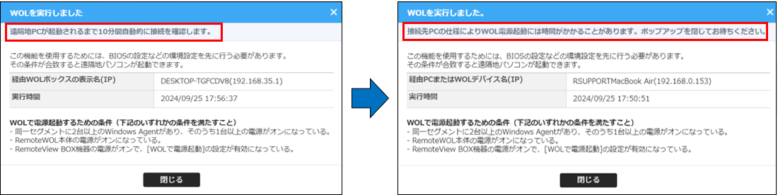 ・WOL電源起動後、Agentの電源起動状態の応答を10分間待機する仕様を変更