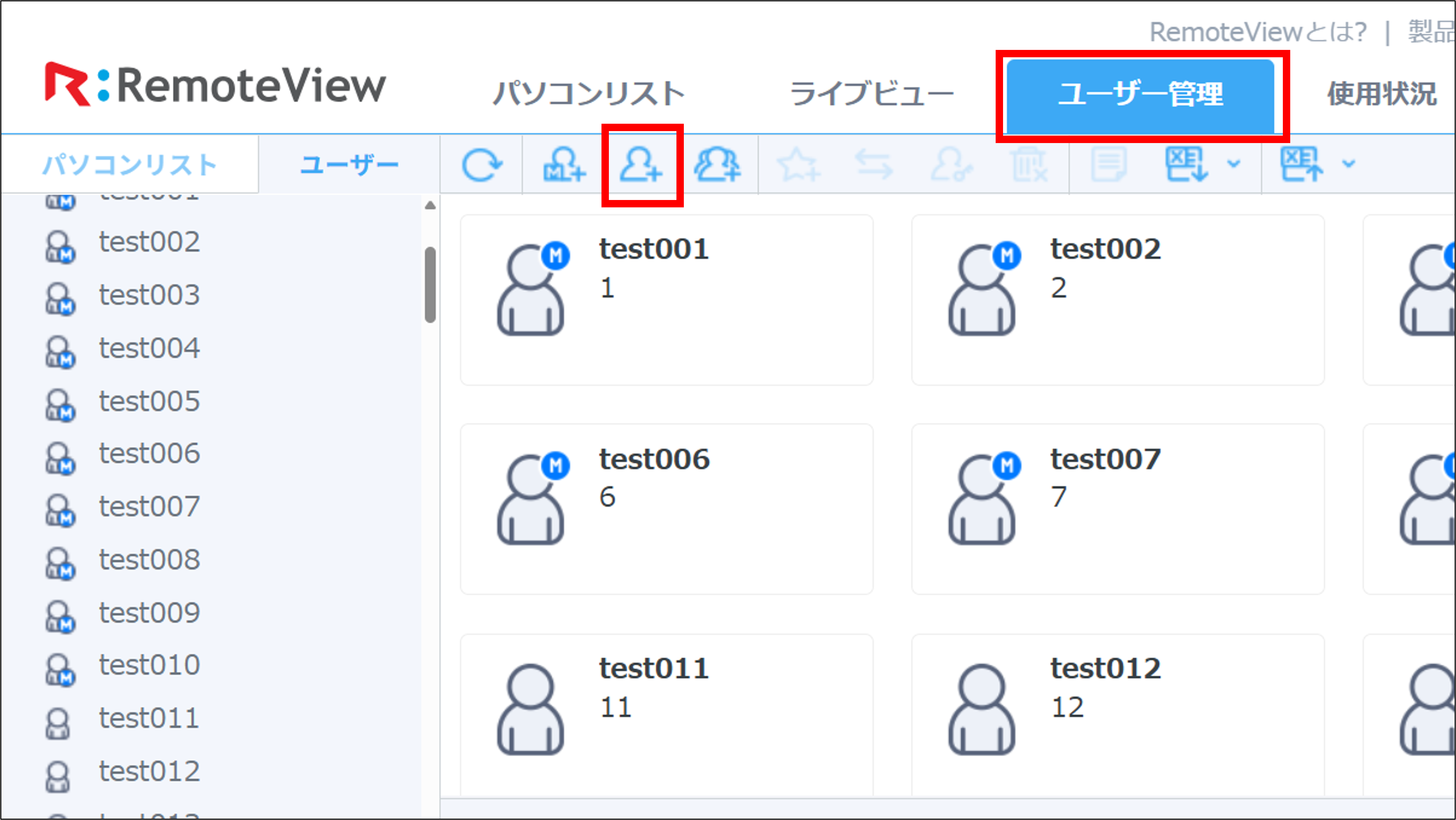画面左上にある「ユーザー追加」アイコンをクリックします。