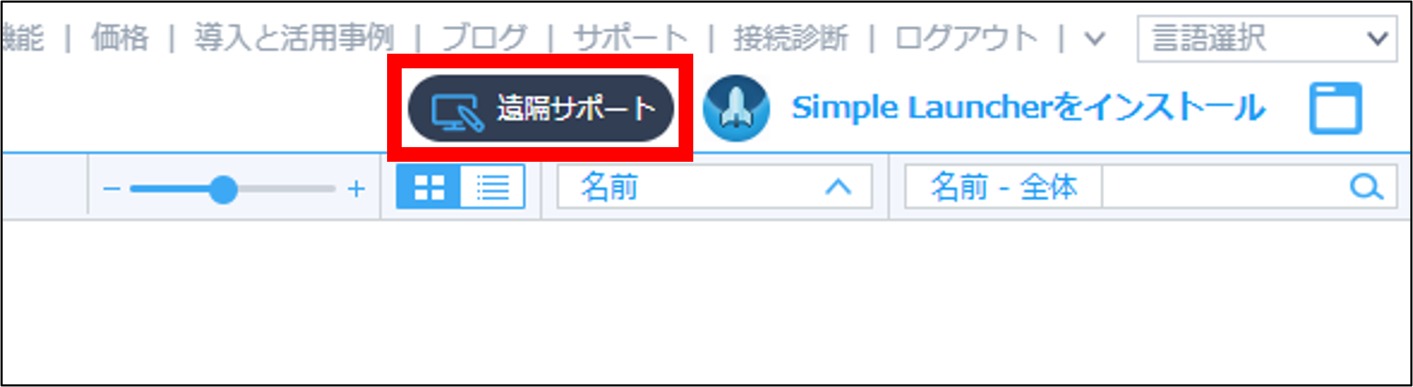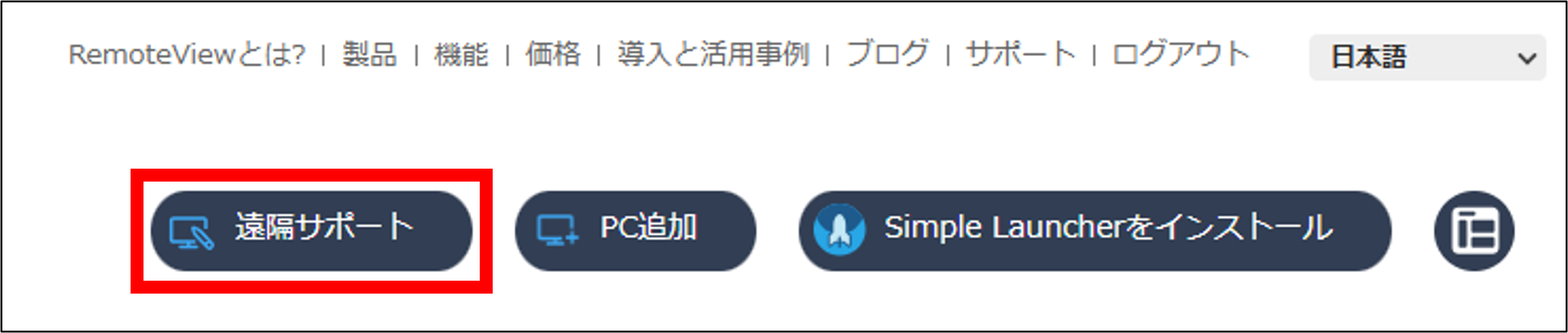 管理者またはマネージャー権限でRemoteViewにログインし、「遠隔サポート」を選択します。
