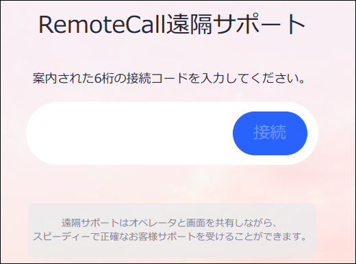 6桁の接続番号を入力し、画面の指示に従って接続用ファイル(exe)を開くと接続が完了します。