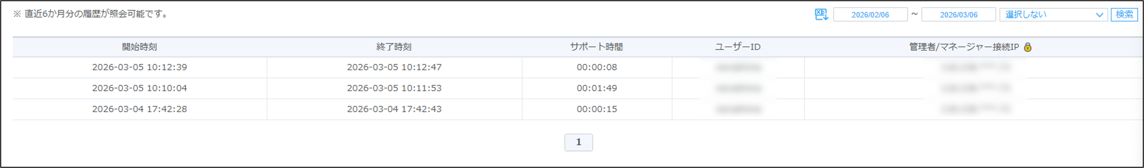 接続日時などの履歴一覧が表示されます。