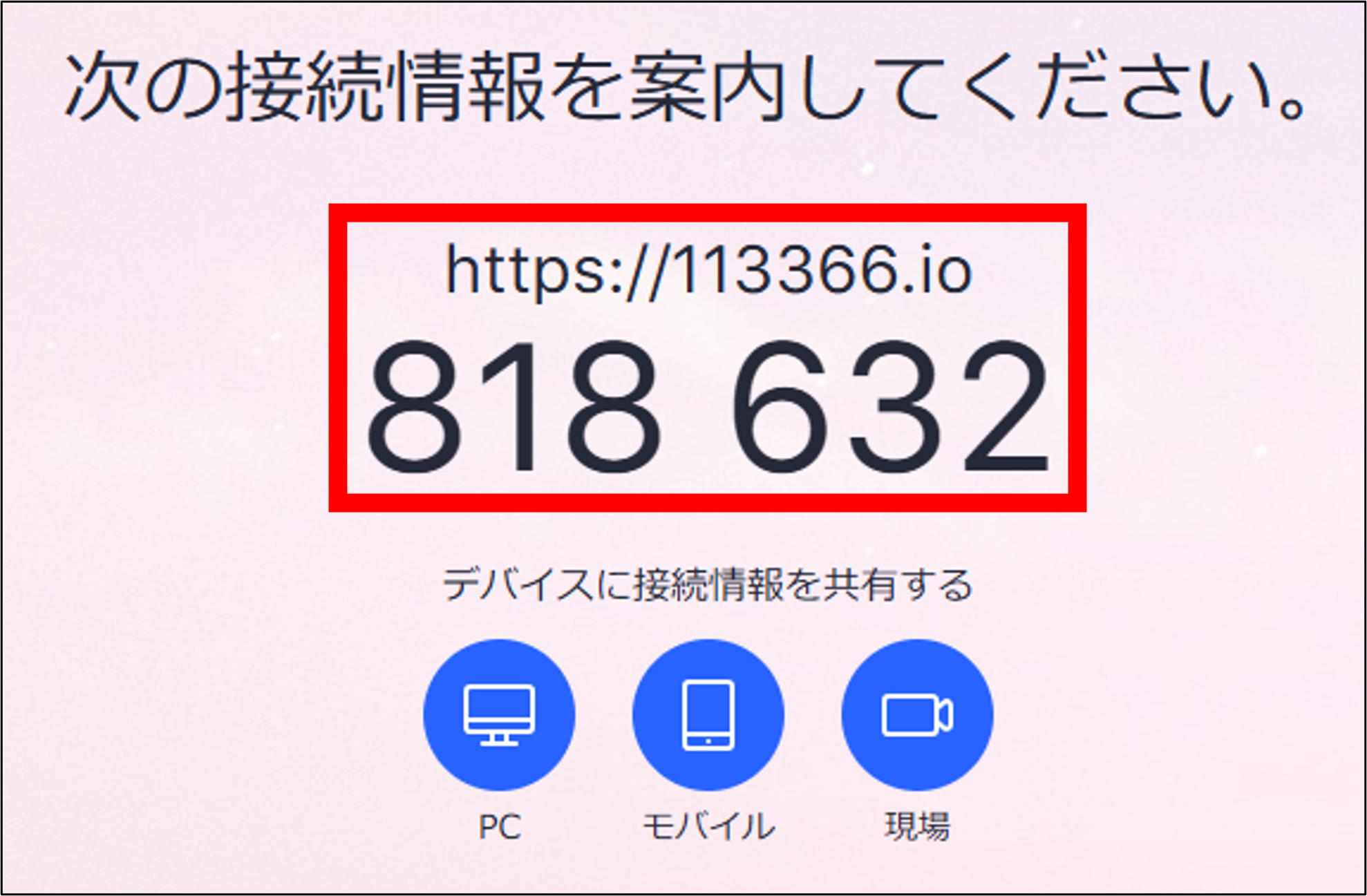 そこに表示されるURLと接続番号(6桁)を相手に伝えてください。