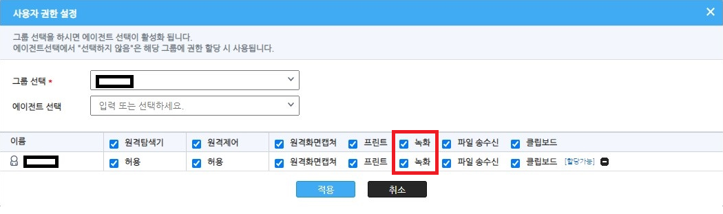 3. 녹화 권한이 할당되어 있는지 확인해 주시기 바랍니다.
