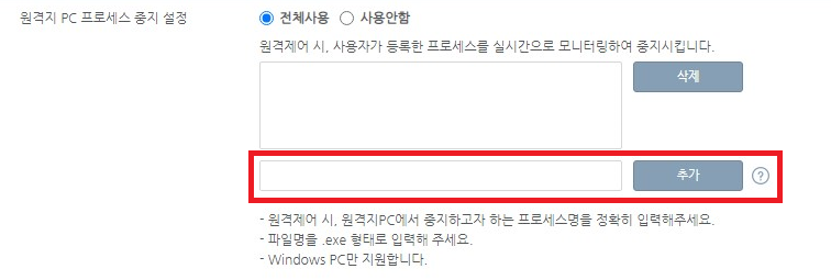 • 원격제어 시, 원격지PC에서 중지하고자 하는 프로세스명을 정확히 입력해주세요.