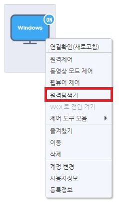 1. 리모트뷰 로그인 > 에이전트 우클릭 > "원격탐색기" 클릭합니다.
