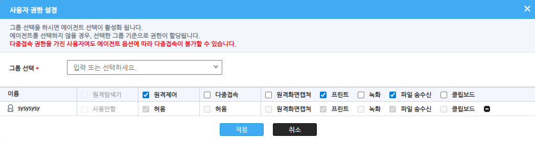 * 매니저는 원격제어 권한에 대해 관리자 계정에서 할당한 설정에 따라 그룹에 대해서는 관리자와 동