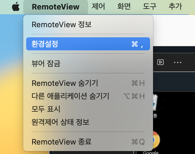 - 상단 메뉴에서 RemoteView 클릭 > 환경설정