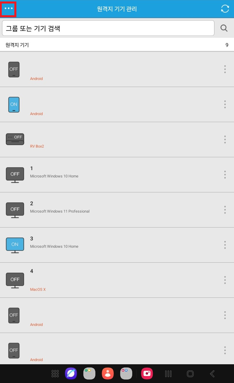 - 원격 연결 전 원격지 기기 관리에서 옵션 메뉴를 선택합니다.