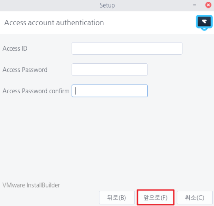 <앞으로> 를 선택하여 설치를 계속 진행합니다.