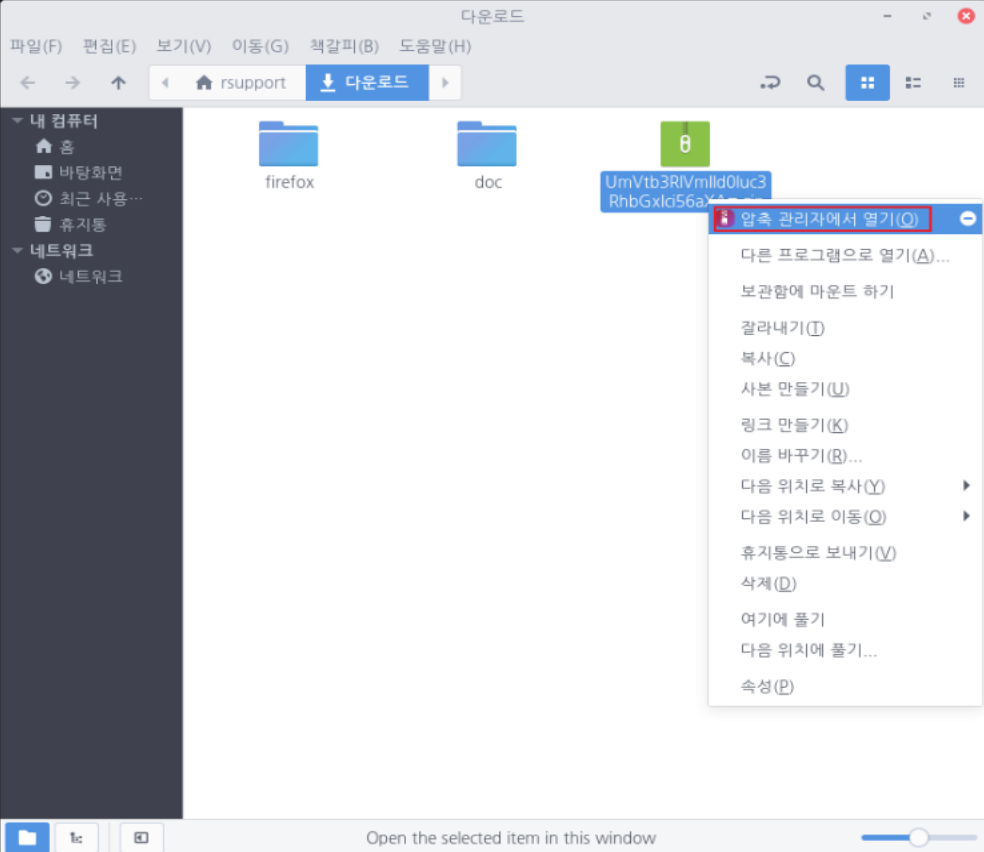브라우저에서 다운로드 받은 파일의 디렉토리를 엽니다.