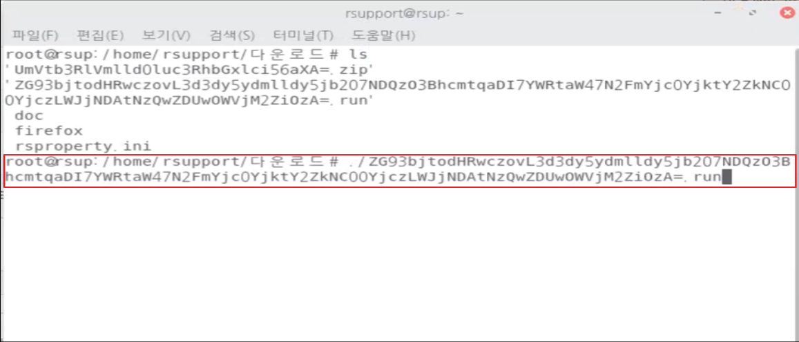 4. 터미널을 열고 패키지 파일(.run)의 디렉토리로 접근하여 패키지 파일을 실행합니다.