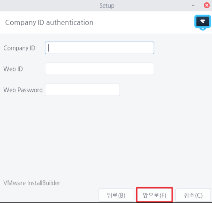 RemoteView 웹에서 Host agent에 접근할 때 인증할 아이디와 패스워드를 입력 후 <앞으로> 를 선택합니다.