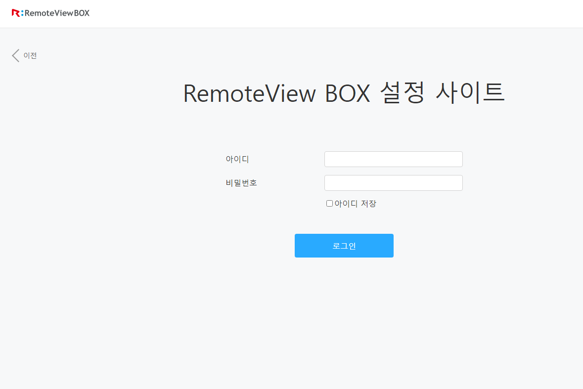 위 사진의 '계속' 버튼 클릭 이후 아래 사진 참고하시어 RemoteView BOX 설정 페이지로 접속하실 수 있습니다.